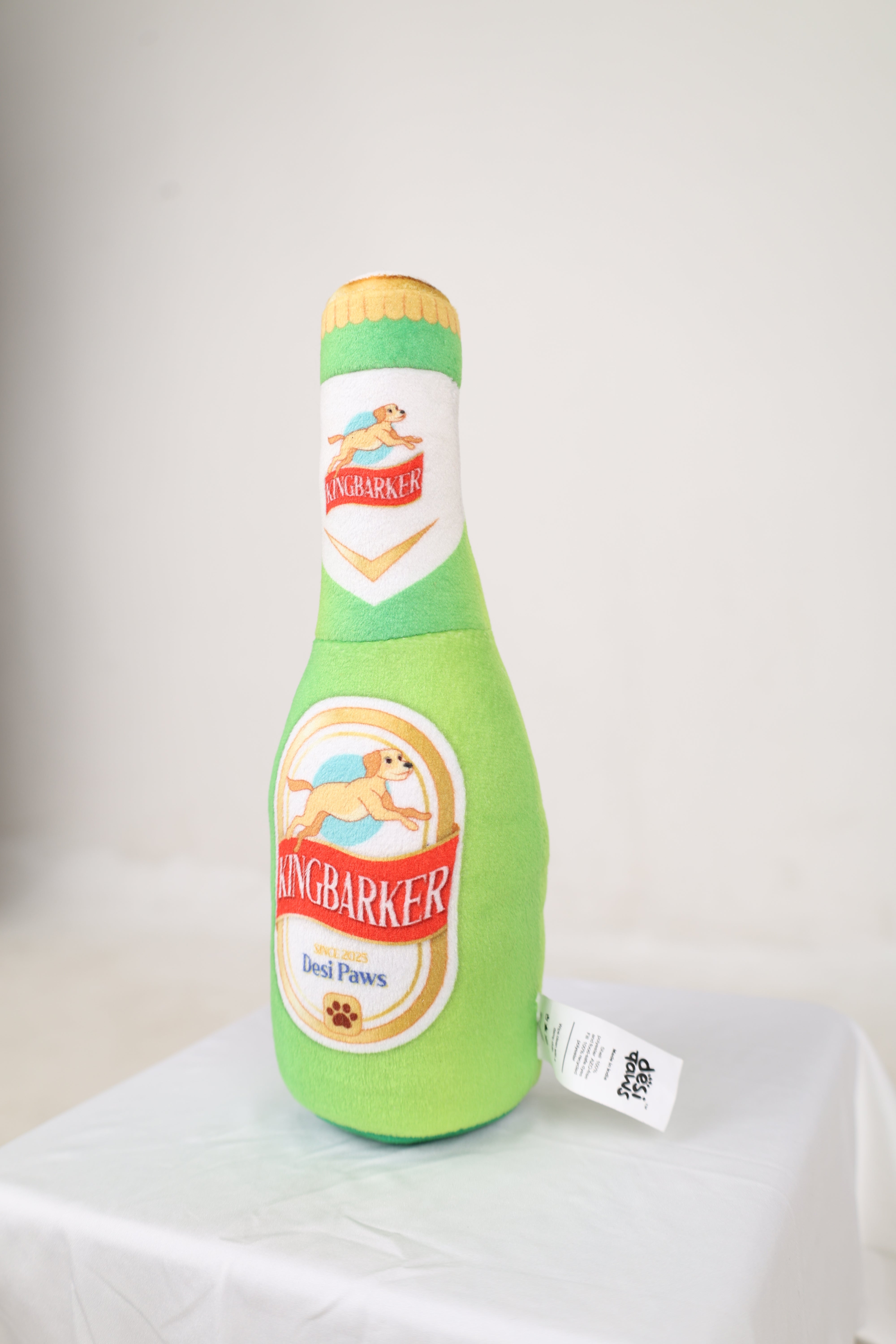 Let your pup enjoy a cold one with the boys (or girls)! Our Kingbarker Beer plush toy is shaped like the iconic Indian beer bottle, complete with a squeaker inside. It’s the perfect companion for a lazy Sunday afternoon, a backyard barbecue, or just chilling on the couch watching the game. Always drink responsibly... and play even more irresponsibly.
